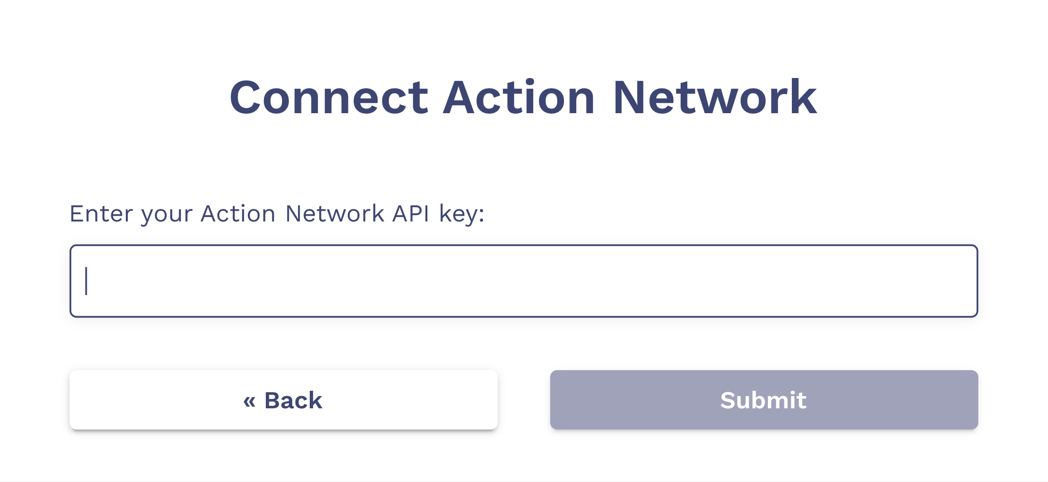 In order to set up your Action Network integration, you’ll need your Action Network API Key.
